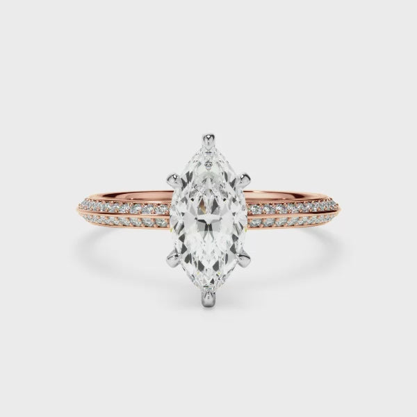 Marquise Cut Diamond Knife Edge Engagement Ring With Diamond Pave Sides