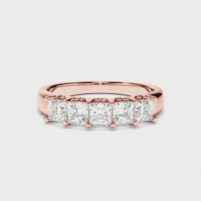 This stunning custom-made anniversary ring features five princess cut diamonds set on an 18ct gold or platinum band. Exuding fluidity in its line work, and boasting an elegant silhouette, as with all the pieces in our Bespoke Collection, this piece is made especially for you.