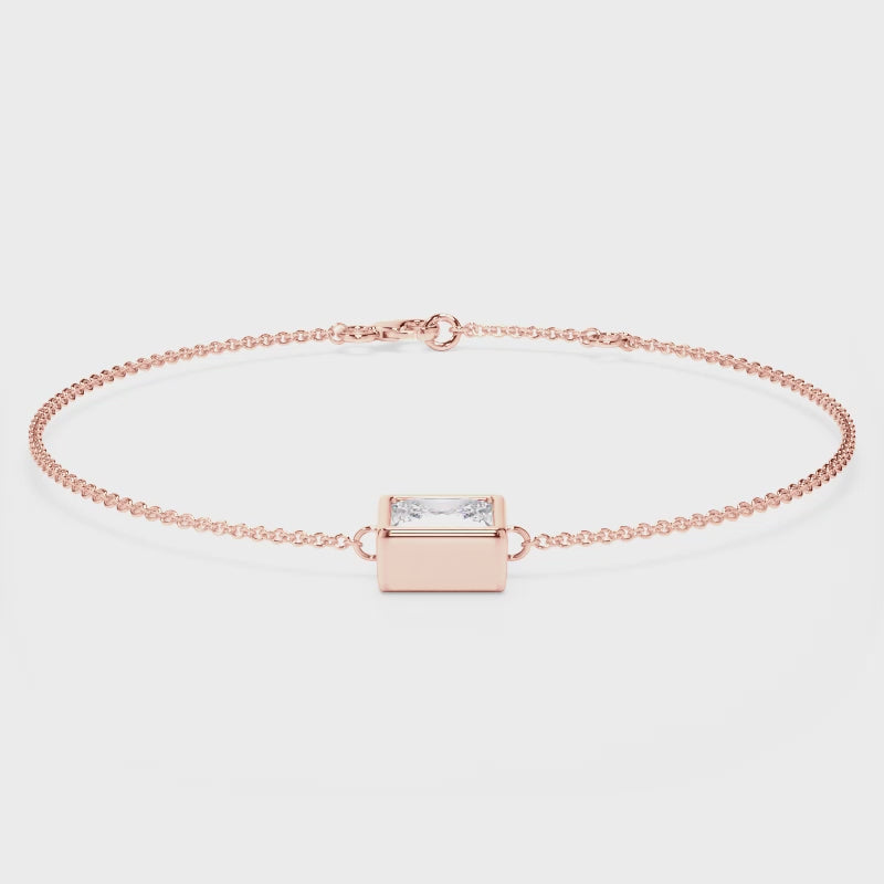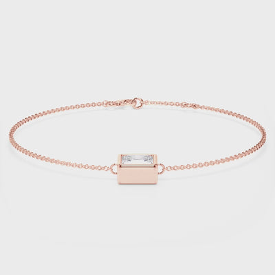 This timeless bezel set diamond bracelet, made with your choice of diamond centre stone, features a 1.00ct princess cut diamond set in 18ct gold. Exuding fluidity in its line work, and boasting an elegant silhouette, as with all the pieces in our Bespoke Collection, this piece is made especially for you. Final price is determined following your centre stone selection.