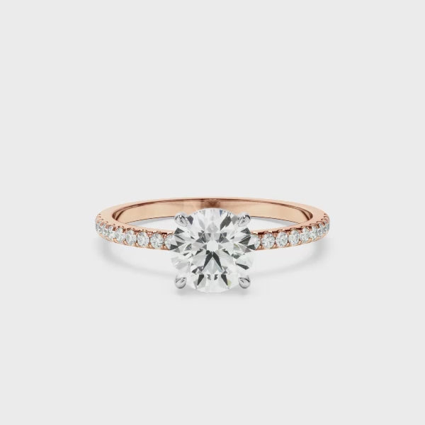 Round Brilliant Cut Diamond Solitaire Engagement Ring With Pave Band
