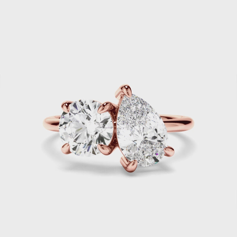Round Brilliant & Pear Cut Diamond Toi et Moi Engagement Ring